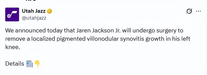 北京時間2月13日,猶他爵士隊官方宣布,小賈倫-杰克遜將接受手術,移除其左膝內一處局部色素沉著絨毛結節(jié)性滑膜炎(PVNS)增生。該增生是在交易后的體檢中通過核磁共振檢查發(fā)現(xiàn)的。